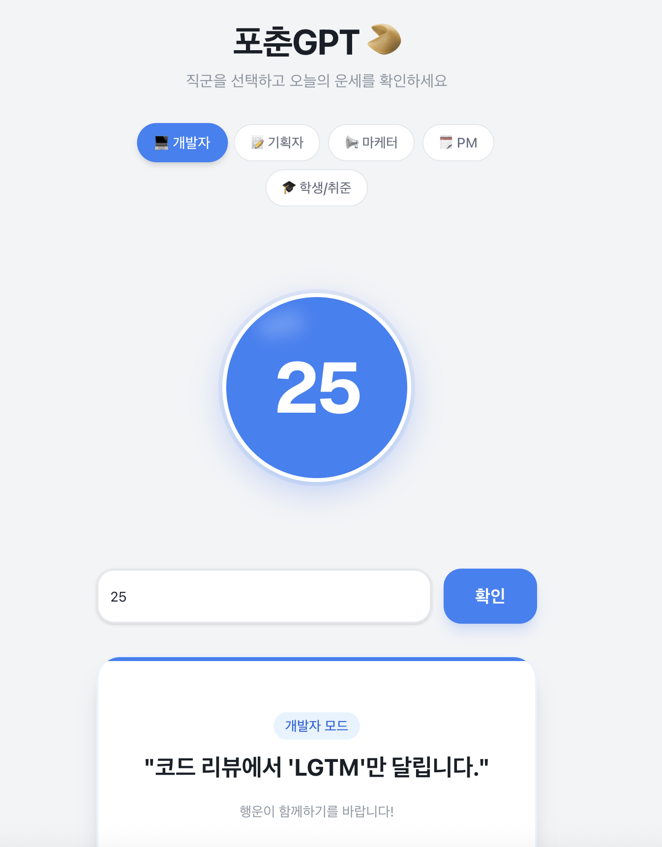 운세와 포춘 메시지를 제공하는 인터랙티브 웹 애플리케이션